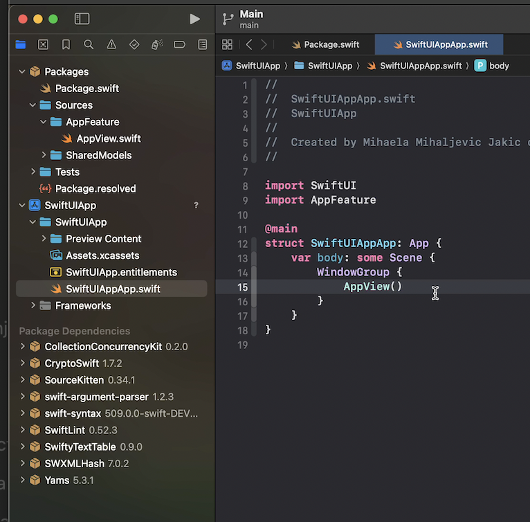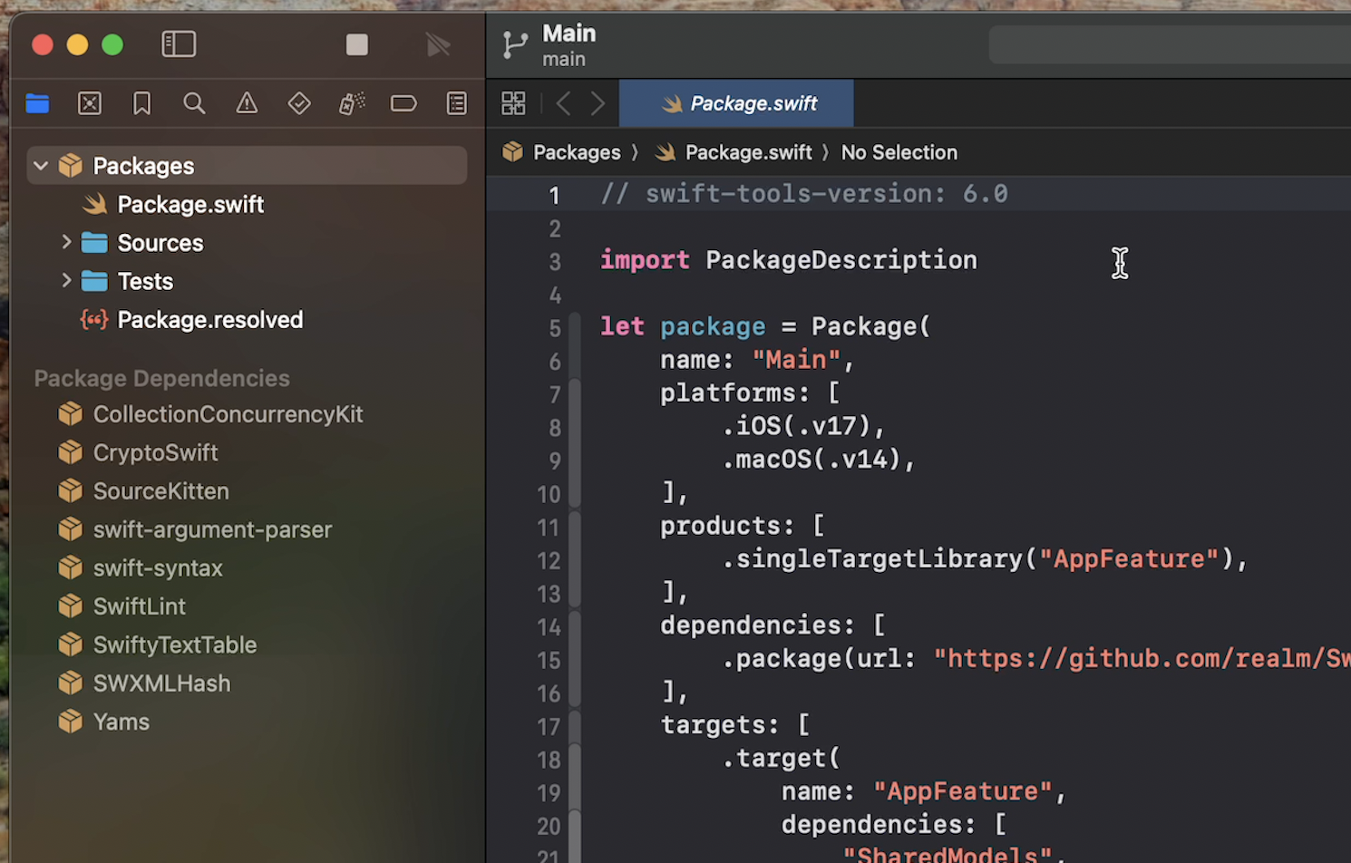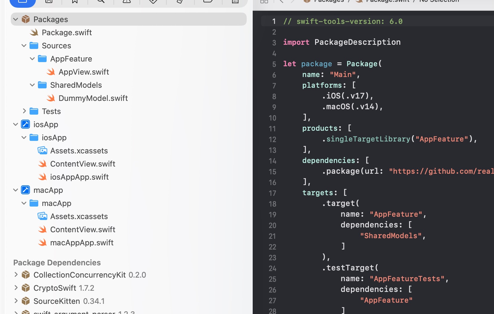 The project begins as a Swift Package Manager–based structure, designed for modularity from the start. At its core is a single Packages