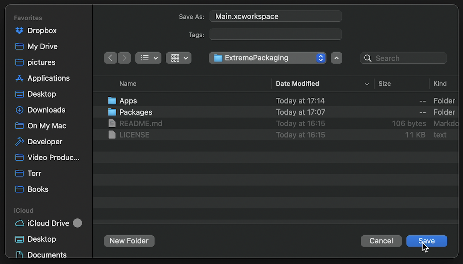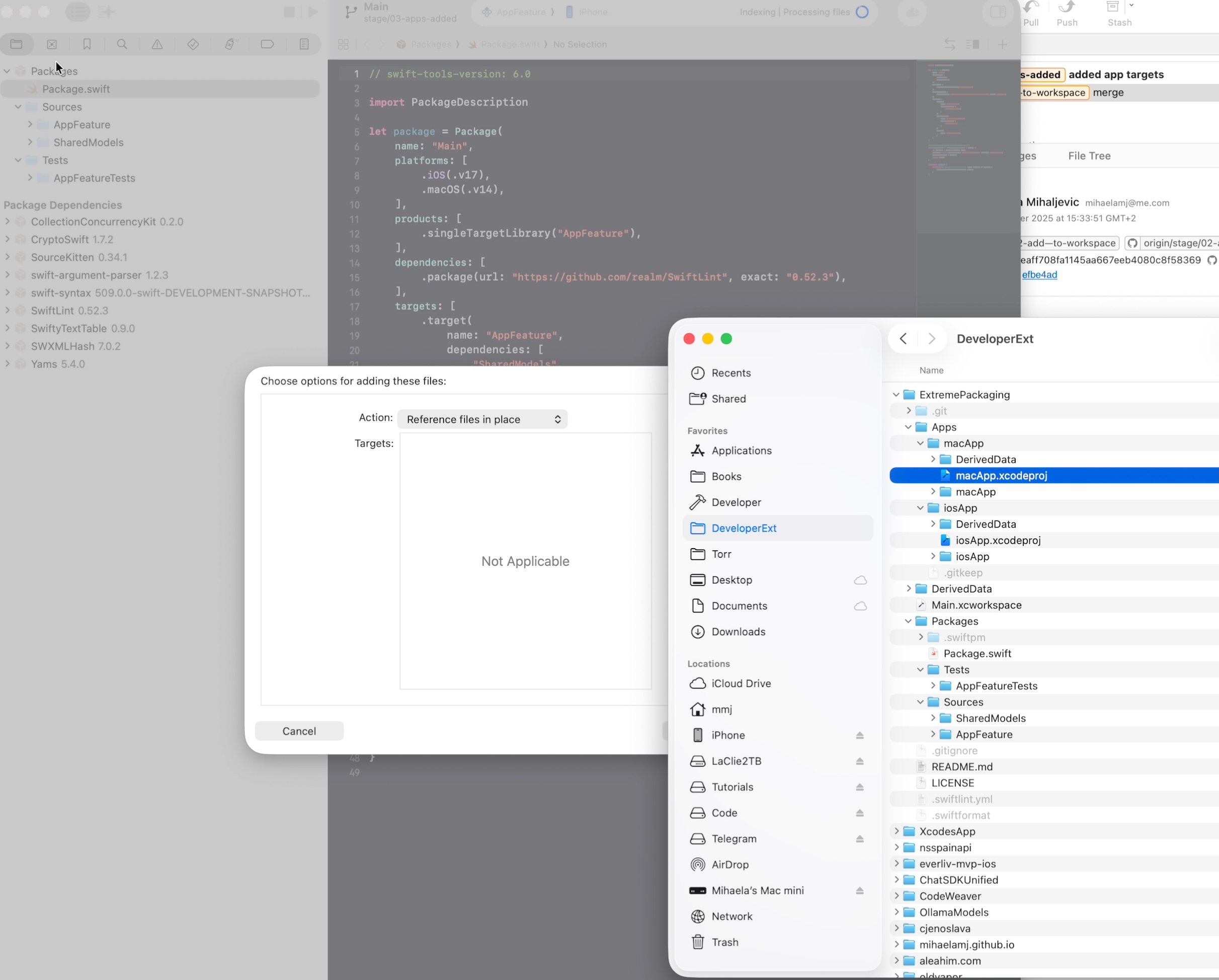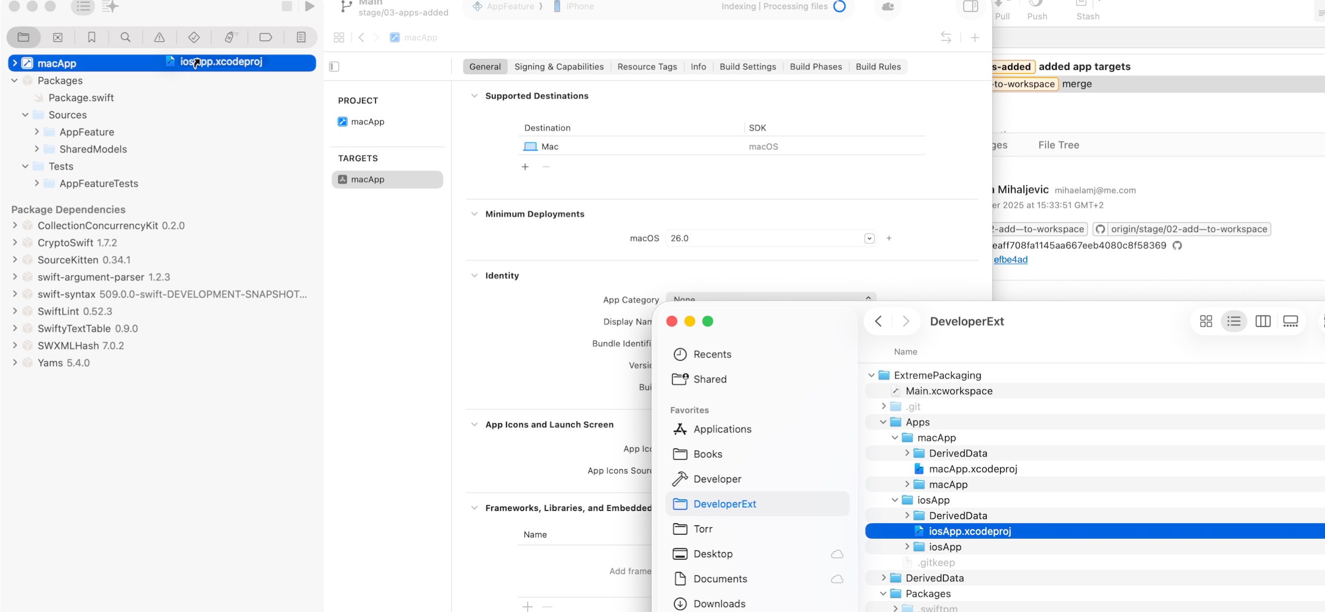 The first step in Extreme Packaging is establishing a clear and reproducible project structure that can evolve gradually through defined stages. Each stage in the repository builds upon the previous one — from the initial package setup, to workspace creation, and finally to adding the app target that ties everything together.